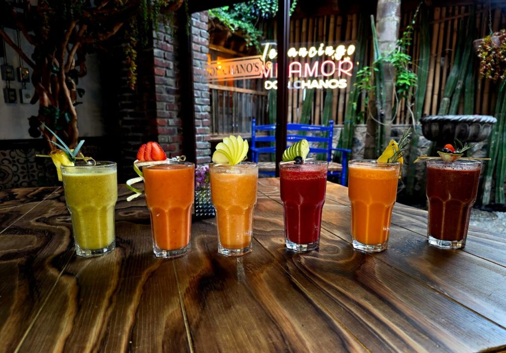 refritos, salsa roja con toque de chile morita, chicharos, jamón, plátano